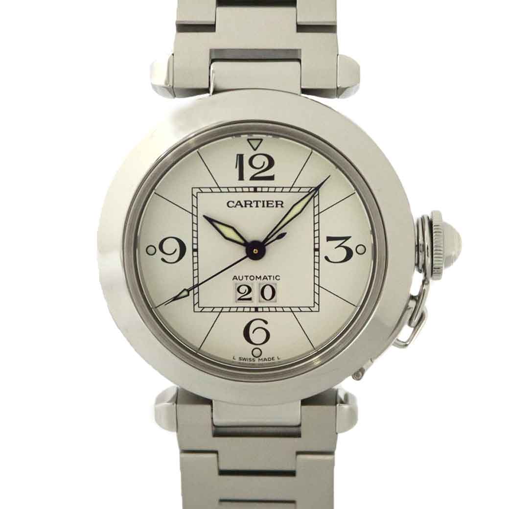 カルティエ Cartier W31044M7 パシャCビッグデイト メンズ 自動巻き 腕時計 ホワイト【中古】
