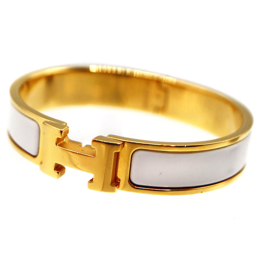 エルメス Hermes クリックアッシュPM ゴールド金具 ホワイト バングル ブレスレット【中古】