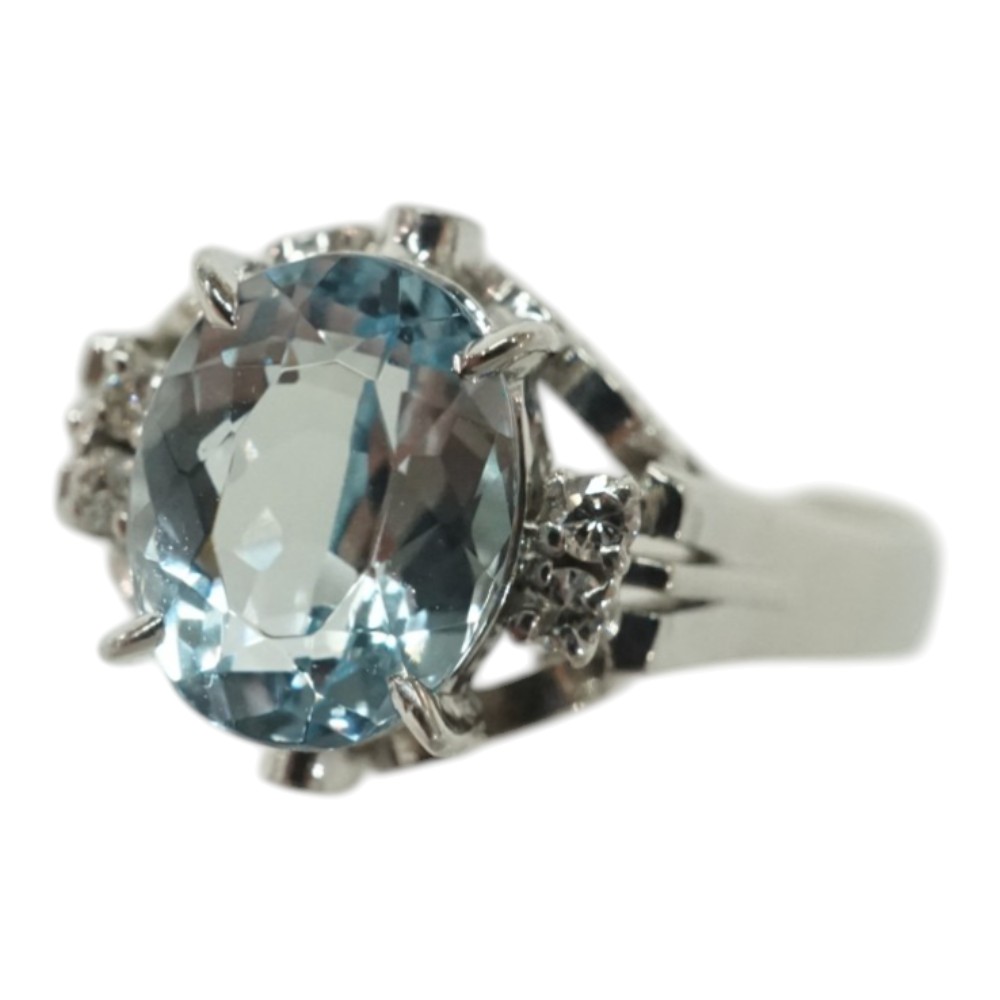 K18WG 18金ホワイトゴールド アクアマリン ダイヤモンドリング レディース 11.5号【中古】