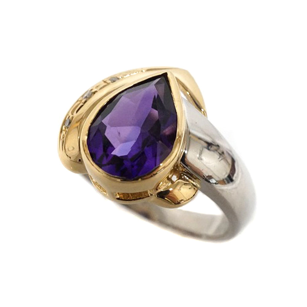 K18 Pt900 ゴールド プラチナ アメシスト D0.02ct ダイヤモンド リング ジュエリー アクセサリー 【中古】