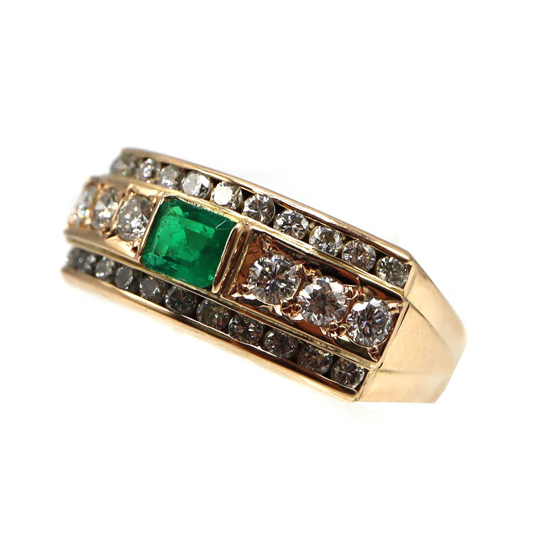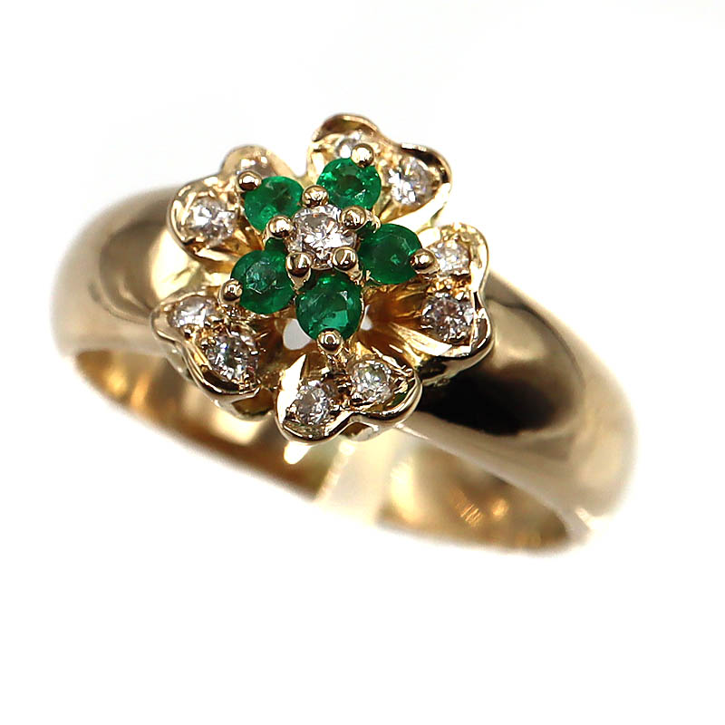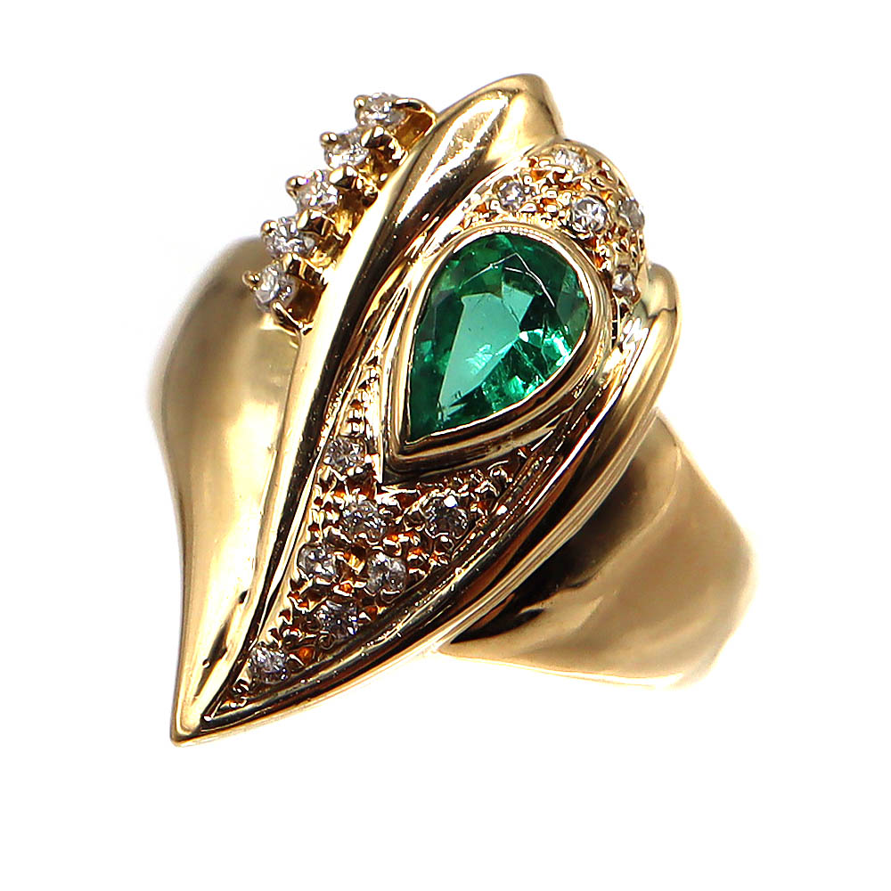 K18 18金 E0.18 D0.19ctリング 指輪 エメラルド ダイヤモンド【中古】