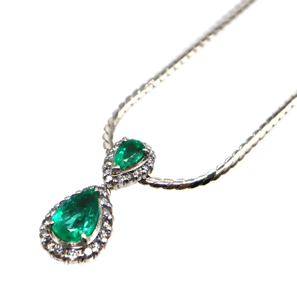Pt850 トップPt900 エメラルド1.25ct/0.38ct ダイヤモンド0.36/0.14ct ネックレス プラチナ ジュエリー レディース【中古】