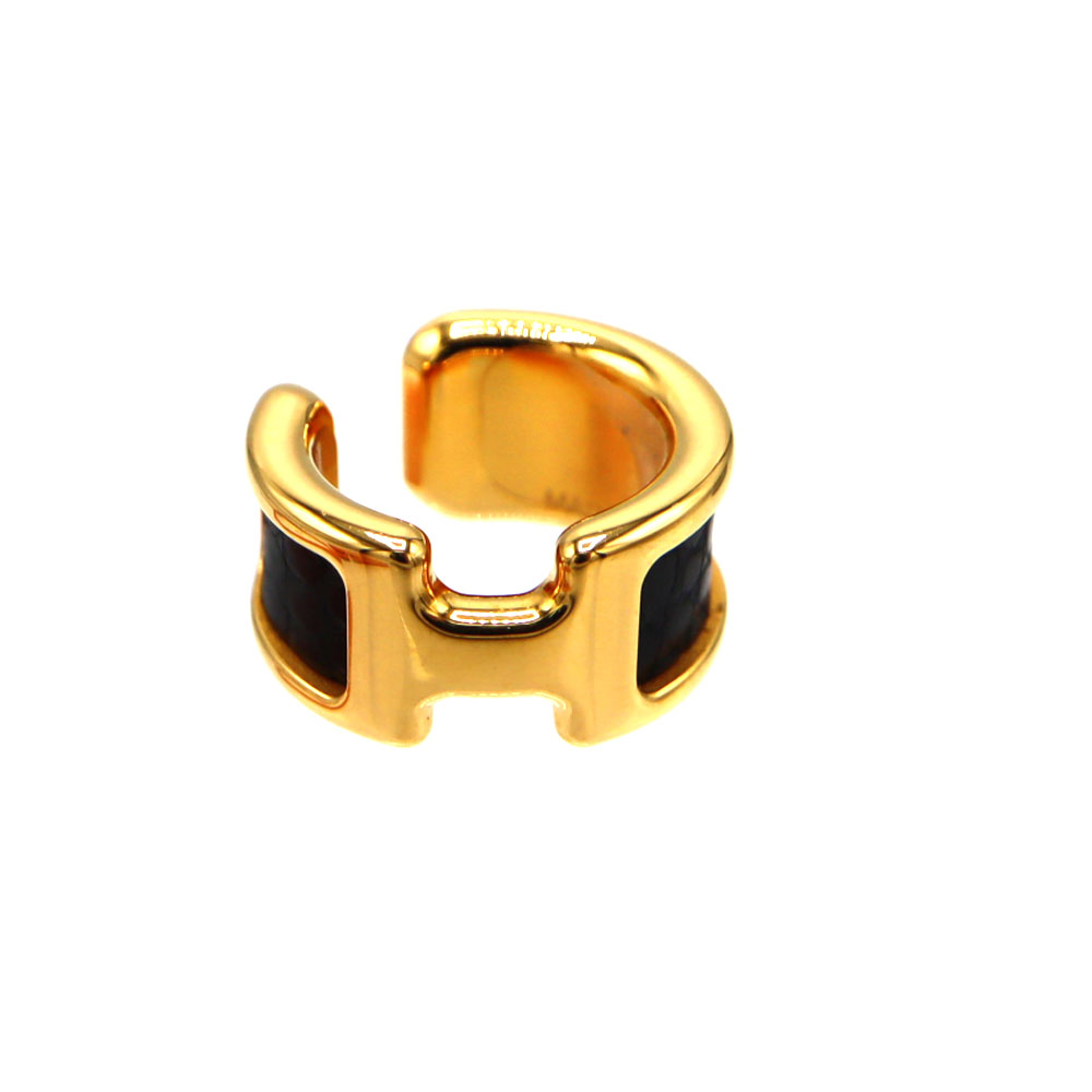 エルメス Hermes オランプPM イヤーカフ 金属素材 レザー ブラック ゴールド 【中古】