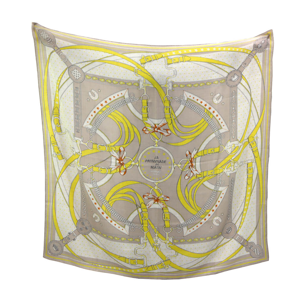 エルメス Hermes カレジェアン140 /LA PROMENADE MATIN 朝の散歩 バンダナ 大判 スカーフ レディース ベージュ 【中古】