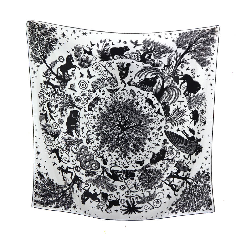 エルメス Hermes カレジェアン140 Sous LE CHARMED Orphee オルフェウスの魅力に誘われて 大判 スカーフ レディース ホワイト 【中古】