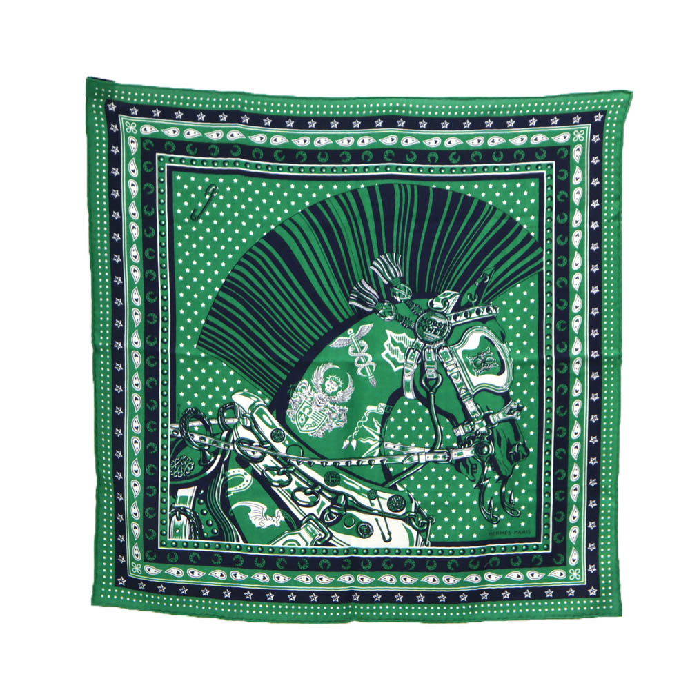 エルメス Hermes カレH65 シュヴァル・パンク・バンダナ スカーフ レディース グリーン 【中古】