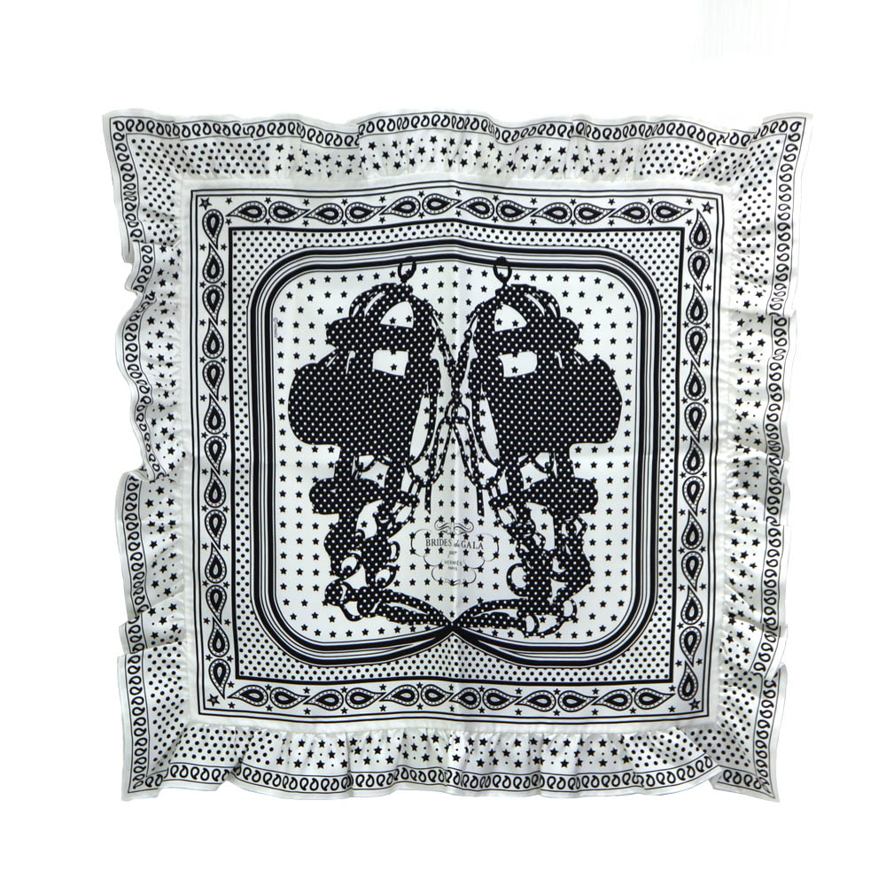 エルメス Hermes カレ70 ブリッド ドゥ ガラ バンダナ ドット スカーフ フリル レディース ホワイト 【中古】