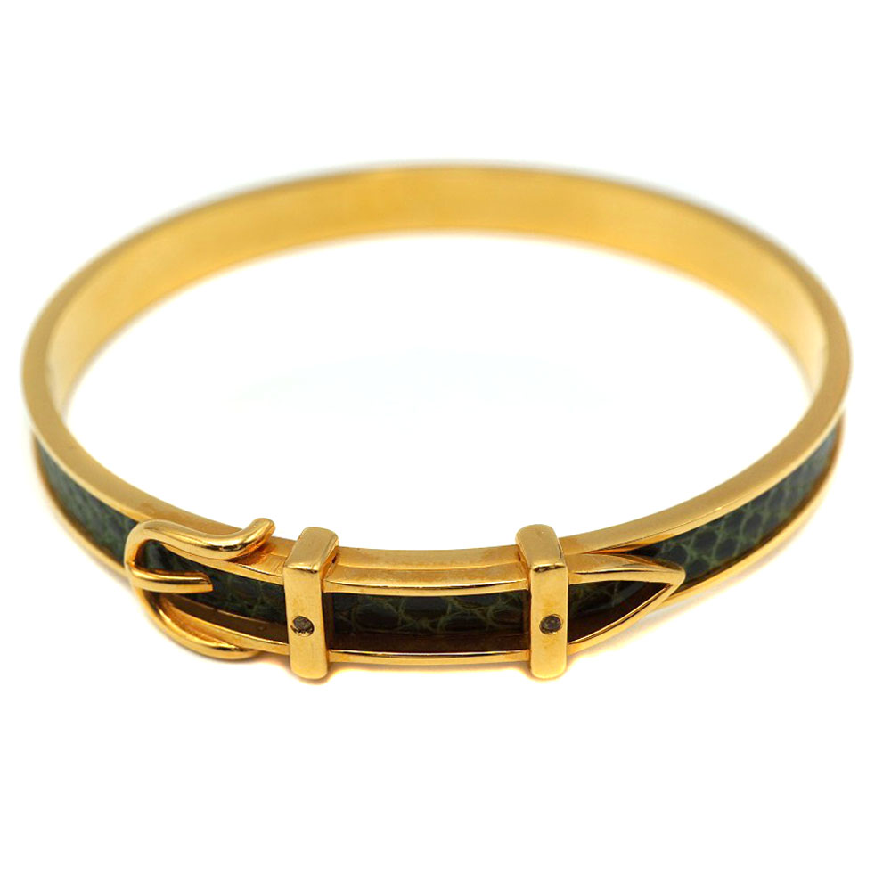 エルメス Hermes ベルトモチーフバングル グリーン ゴールド リザード【中古】