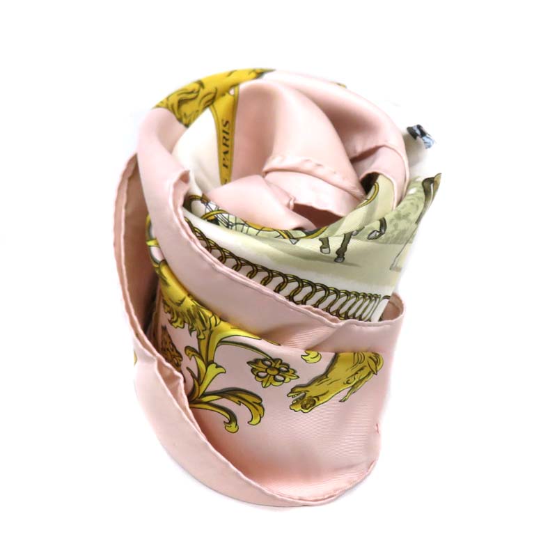 エルメス Hermès カレ90 ロンシャンへの散歩 スカーフ レディース ピンク系 シルク100% 【中古】
