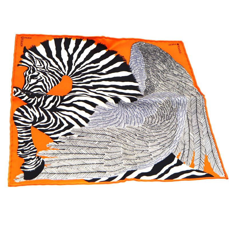 エルメス Hermes 332816Sカレナノ カレ20 スカーフ ZEBRA PEGASUS レディース オレンジ 【中古】