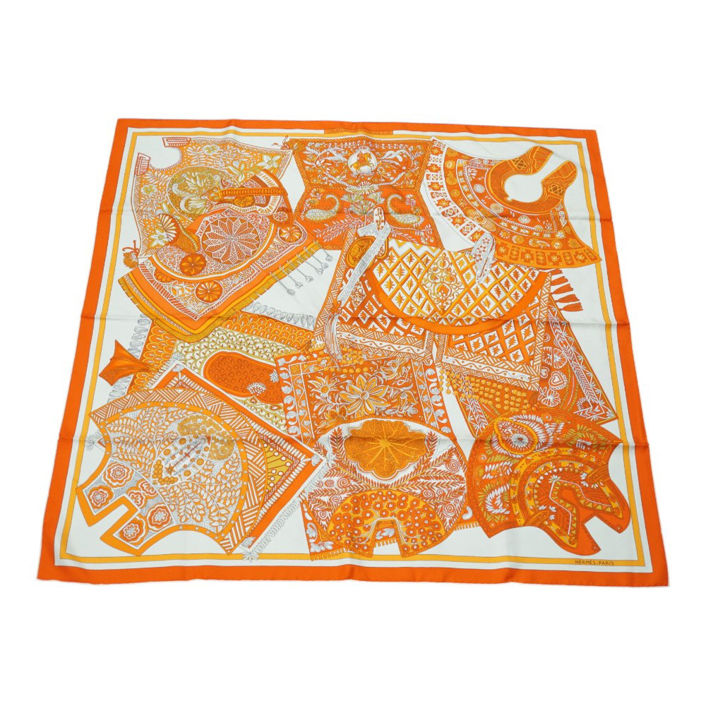 エルメス Hermes カレジェアン140 SELLE DE DIGNITAIRE 高官の鞍 大判 スカーフ レディース オレンジ 【中古】