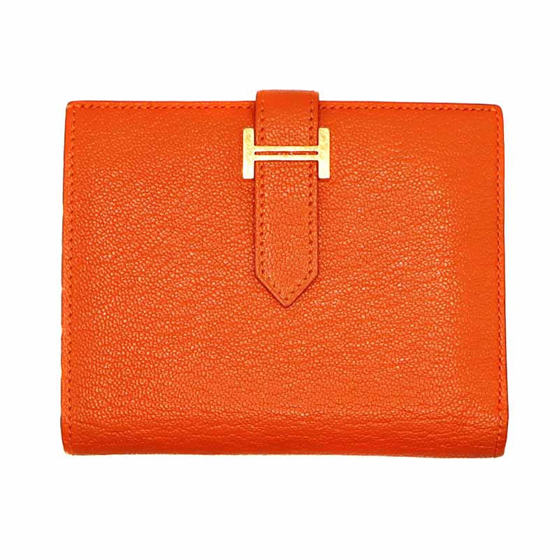 エルメス Hermes ベアンコンパクト レザー 二つ折り財布 オレンジ B刻印 2023年 レディース【中古】