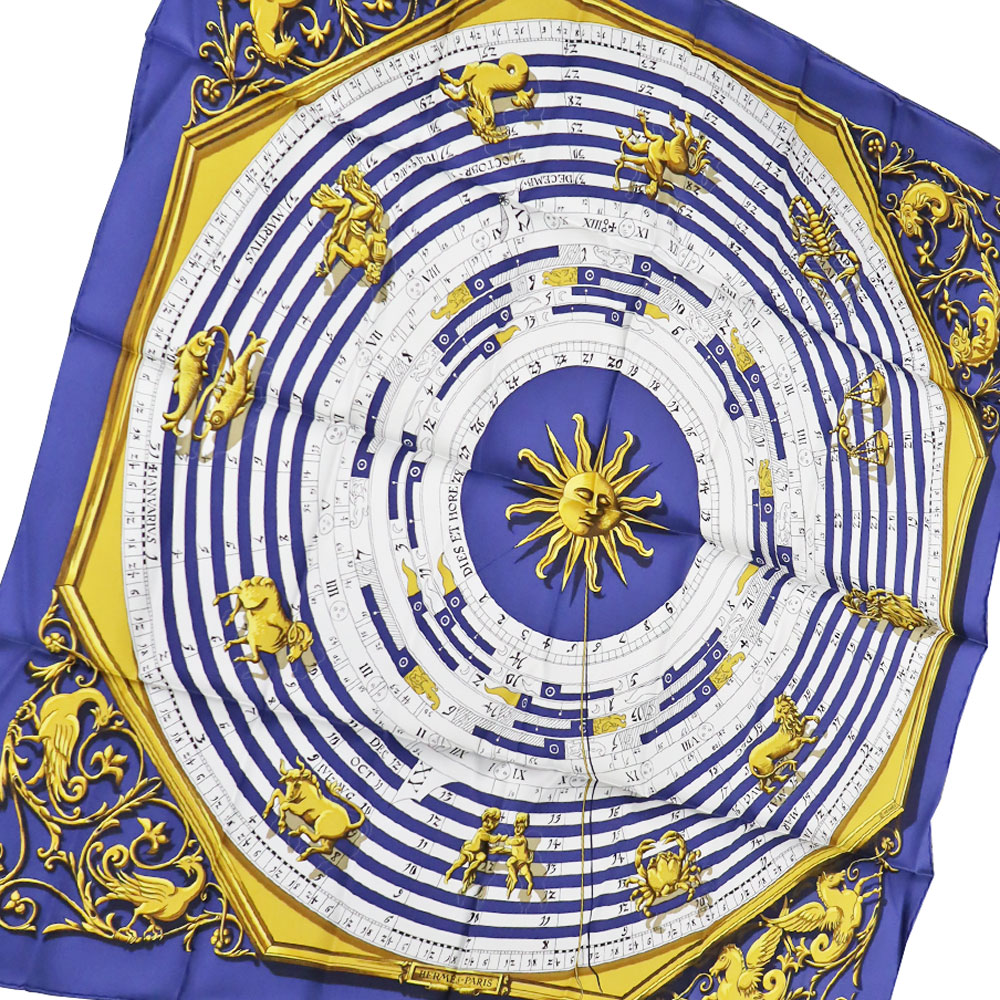 HERMES エルメス カレ90 占星術 スカーフ メンズ レディース シルク ブルー系 【中古】