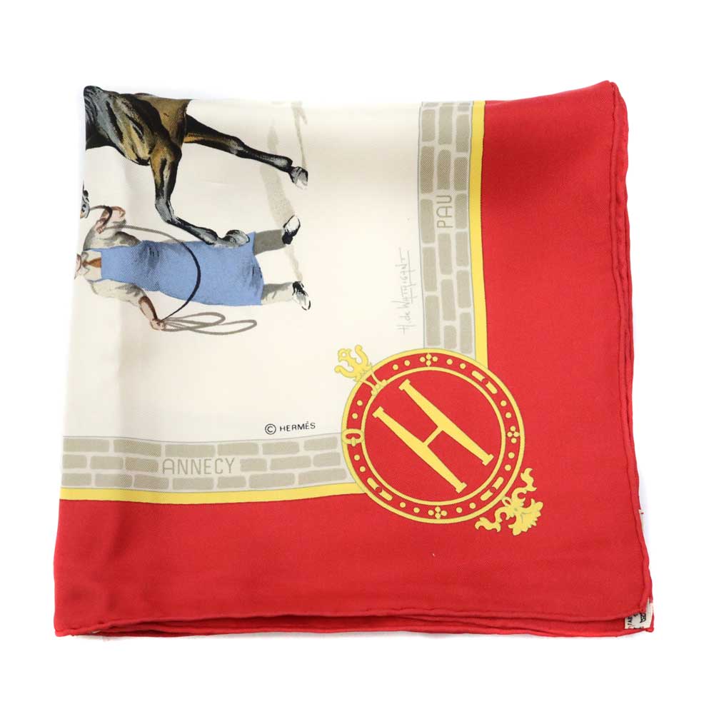 エルメス Hermes カレ90 LES HARAS NATIONAUX ホワイト×レッド系 スカーフ メンズ レディース【中古】