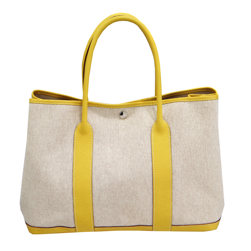 エルメス Hermes ガーデンパーティPM トワルアッシュ キャンバス レザー ハンドバッグ 鞄 ベージュ イエロー 2009年【中古】