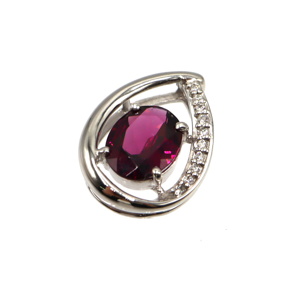18金 ホワイトゴールド K18WG ロードライトガーネット4.55ct ダイヤモンド0.04ct レディース ネックレス ジュエリー【中古】
