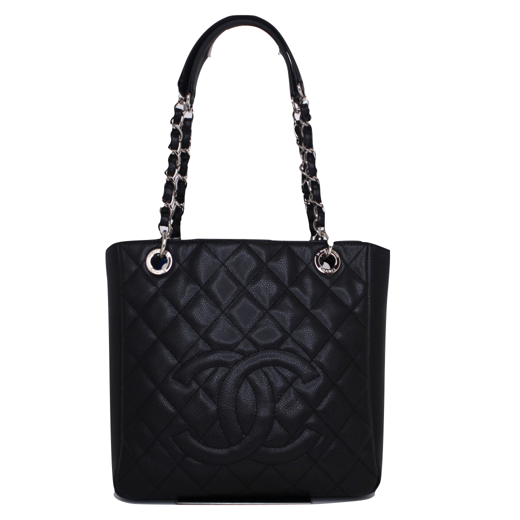 【CHANEL】シャネル チェーントートPM トートバッグ キャビアスキン ブラック【中古】