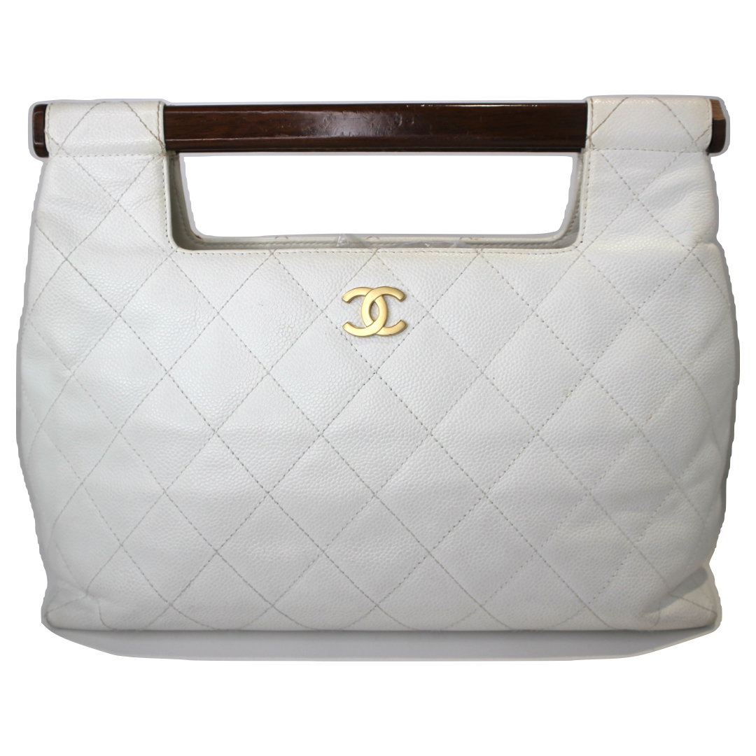 【CHANEL】シャネル ウッドハンドルバッグ ハンドバッグ キャビアスキン ホワイト【中古】