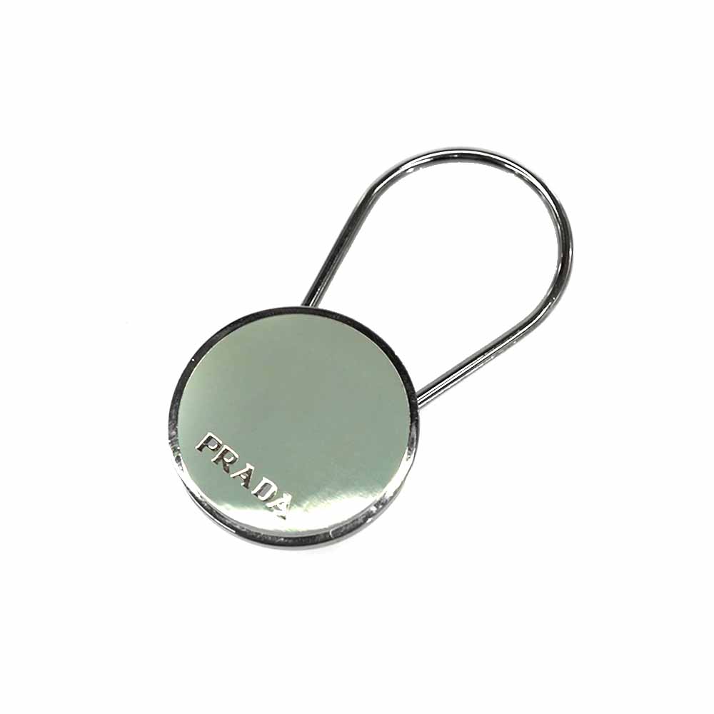 プラダ Prada メタルキーホルダー キーリング シルバー ブルー【中古】