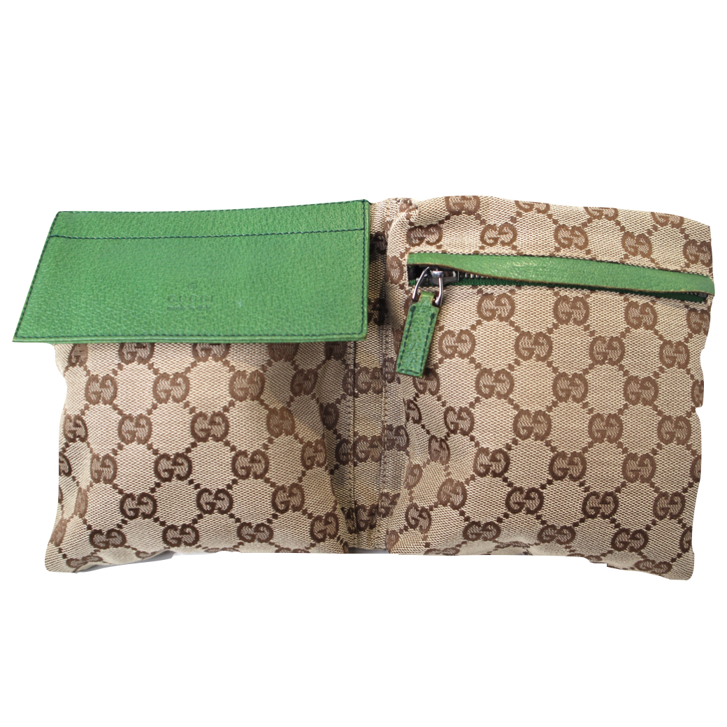 【GUCCI】グッチ 28566 ボディバッグ ボディバッグ GGキャンバス レザー グリーン ベージュ【中古】