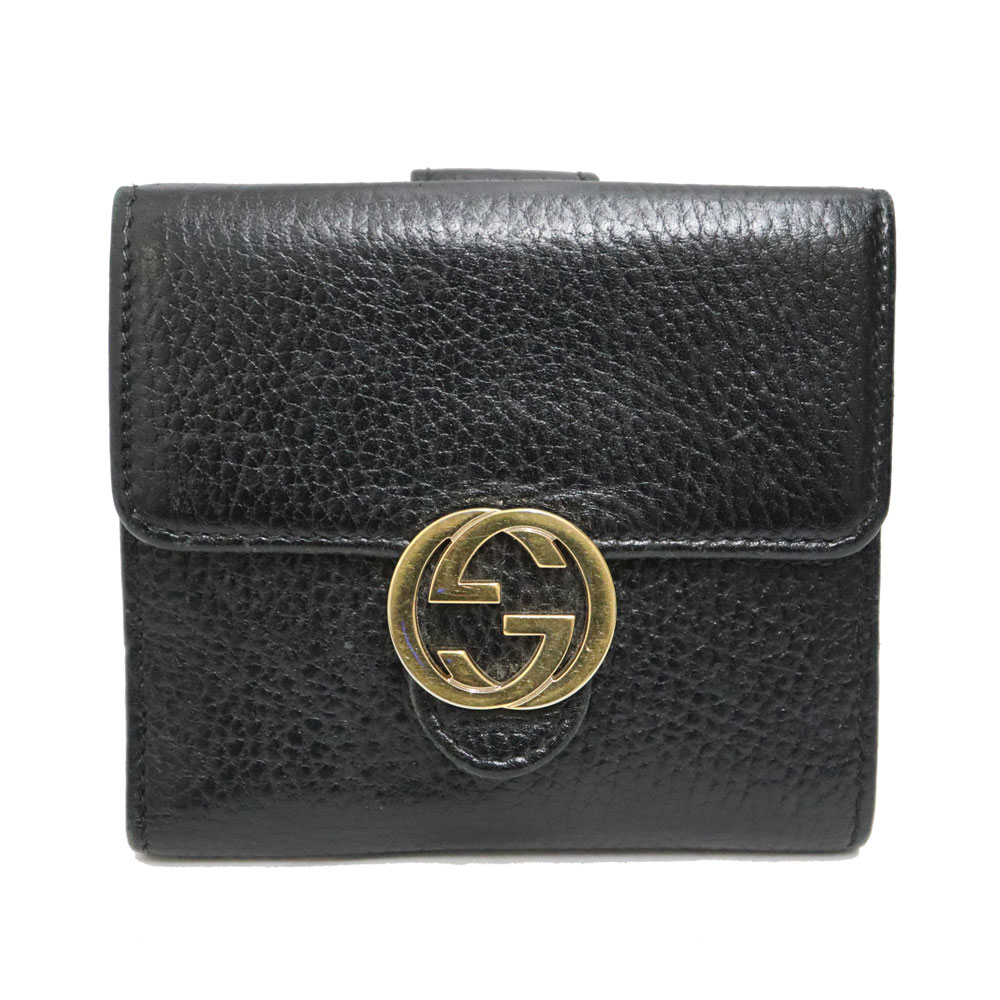 グッチ Gucci 615525 Wホック財布 インターロッキングG 二つ折り財布 ブラック レザー レディース【中古】