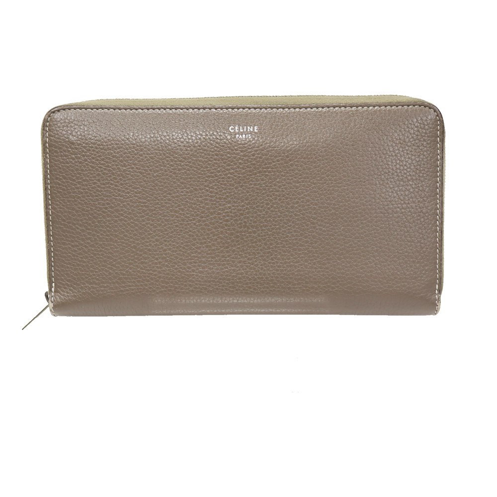 セリーヌ Celine 1050003AFE.09SO ラウンドファスナー財布 長財布 レザー グレージュ【中古】