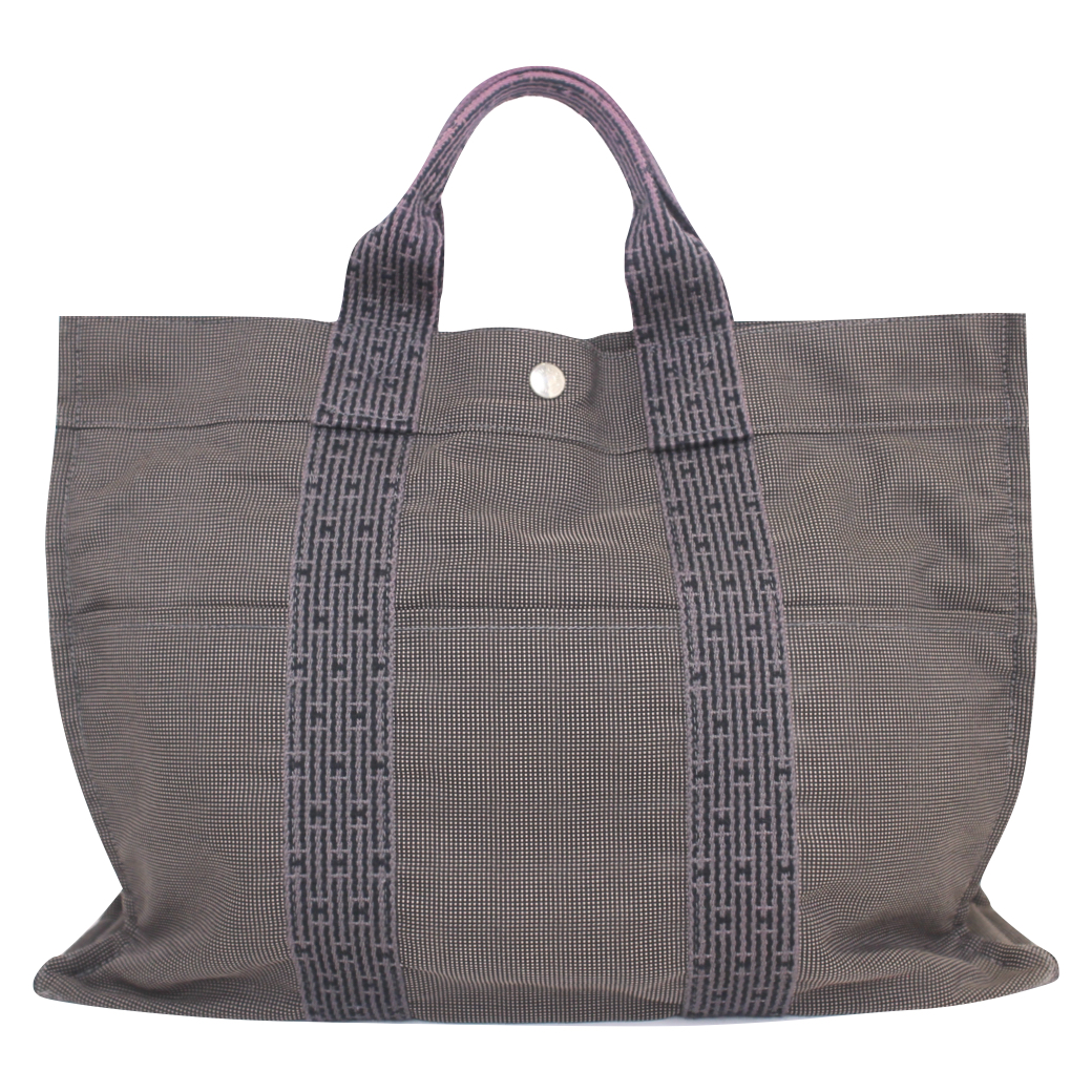 【HERMES】エルメス エールライントートMM トートバッグ ナイロン グレー【中古】