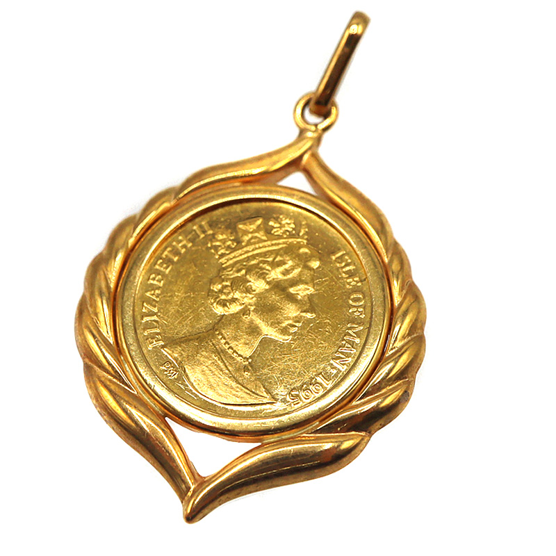 K24 K18 24金 18金 イエローゴールド K18枠マン島キャット1/5oz金貨 ペンダントトップ【中古】