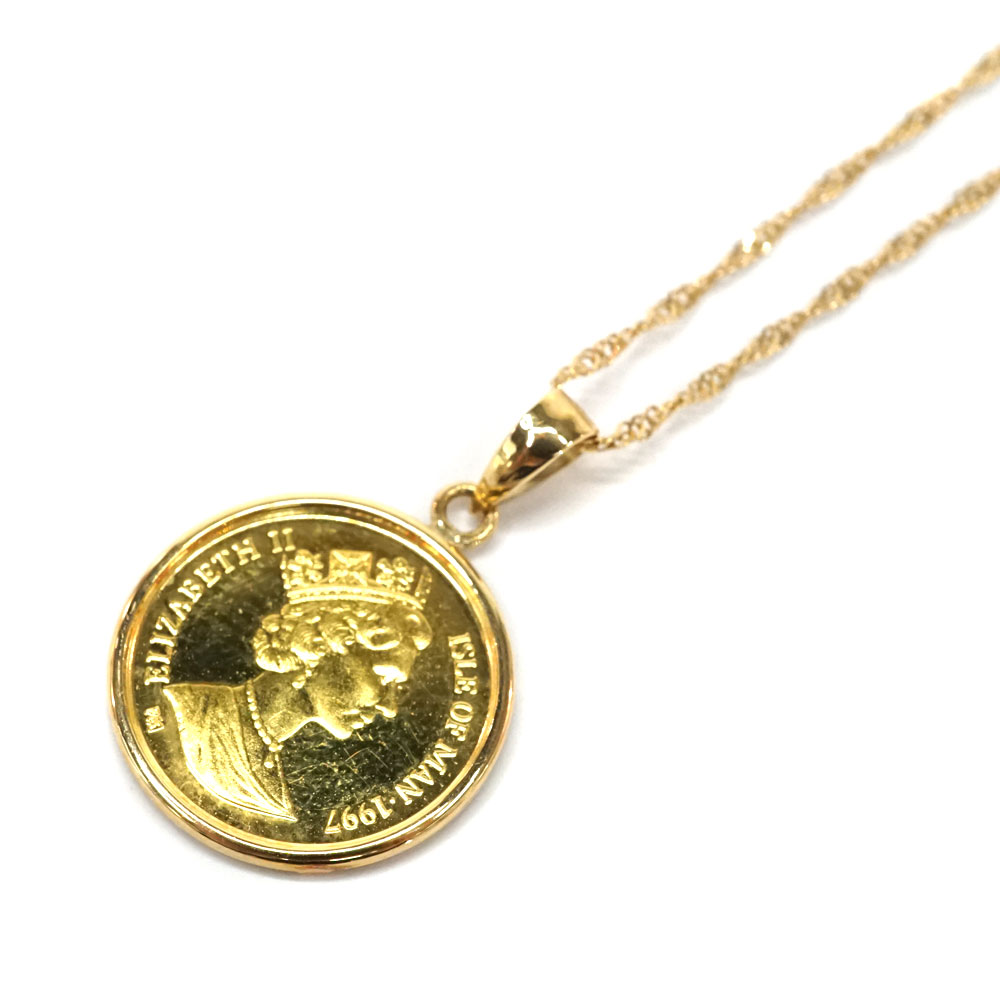 K2418金 24金 1/4ozコイン付きネックレス アクセサリー【中古】