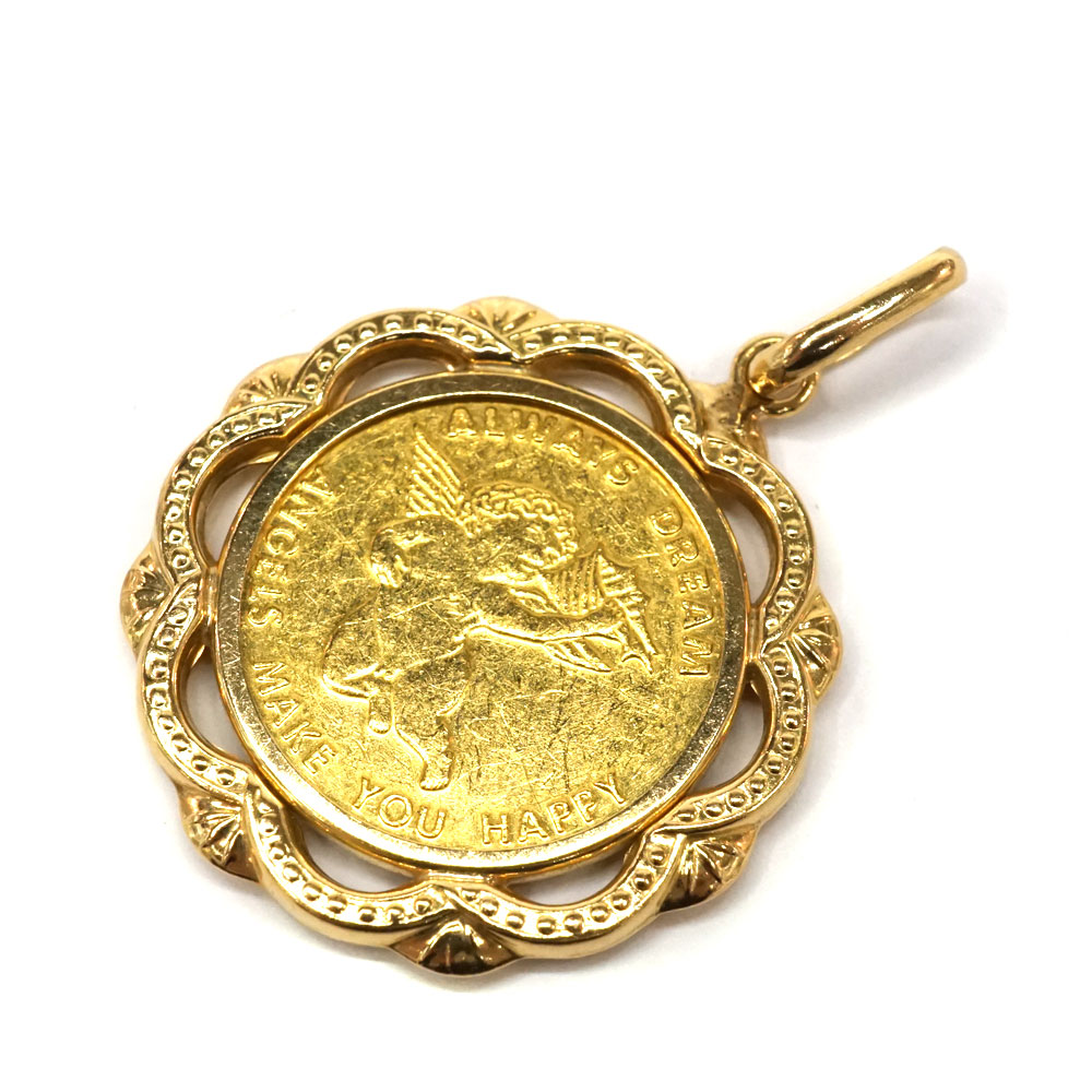 18金 K18 エンジェルコインモチーフ ペンダントトップ コイントップ ゴールド【中古】