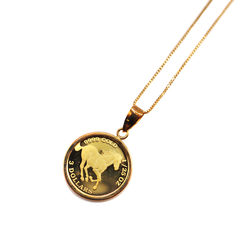 K18 18金 K24 24金 ゴールド ホース1/25ozトップ付ネックレス コイントップ付きネックレス ホースコイン【中古】
