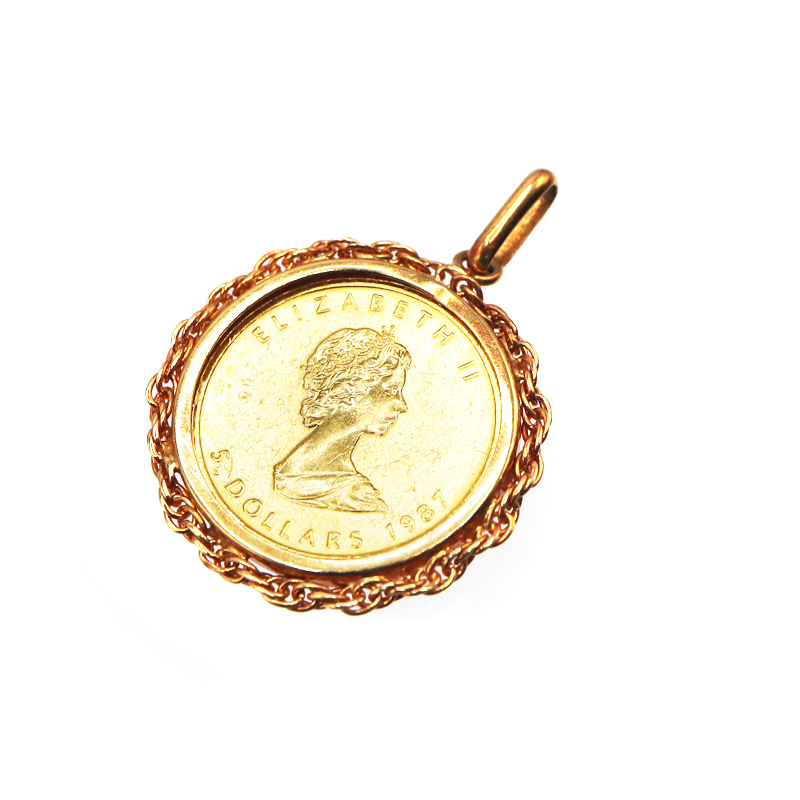 24金 18金 K24 K18 K18枠メープルリーフコイン1/10oz ペンダントトップ コイントップ ゴールド【中古】