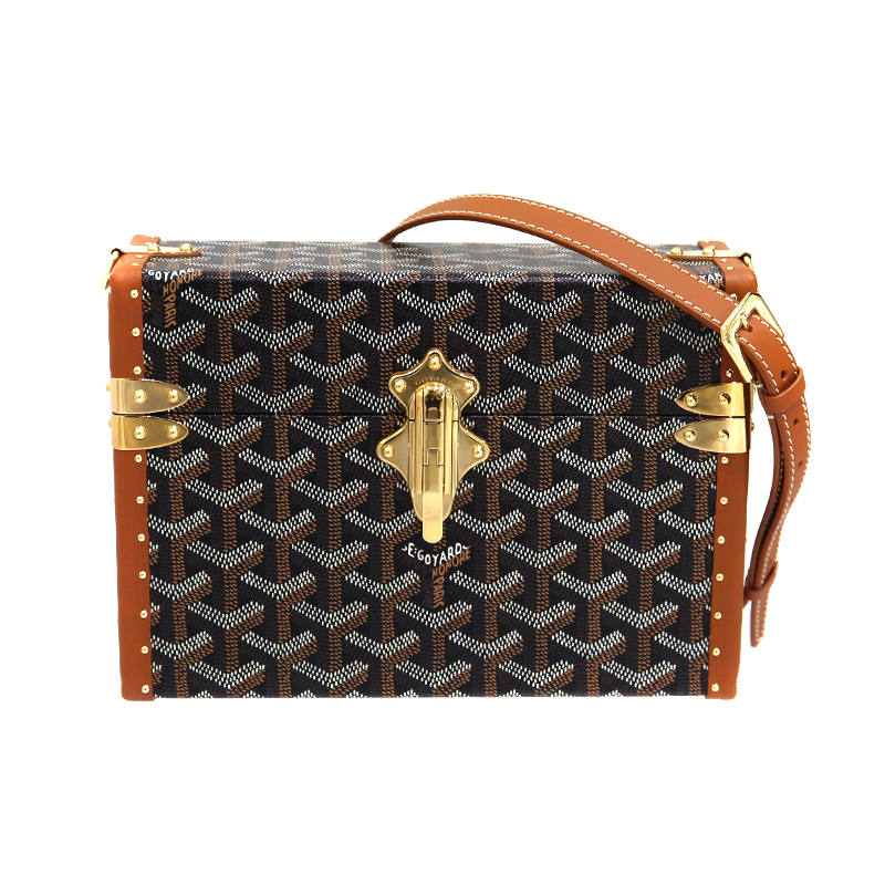 ゴヤール Goyard カセットトランクバッグ コーティングキャンバス レザー ヘリンボーン ブラック ブラウン レディース 【中古】