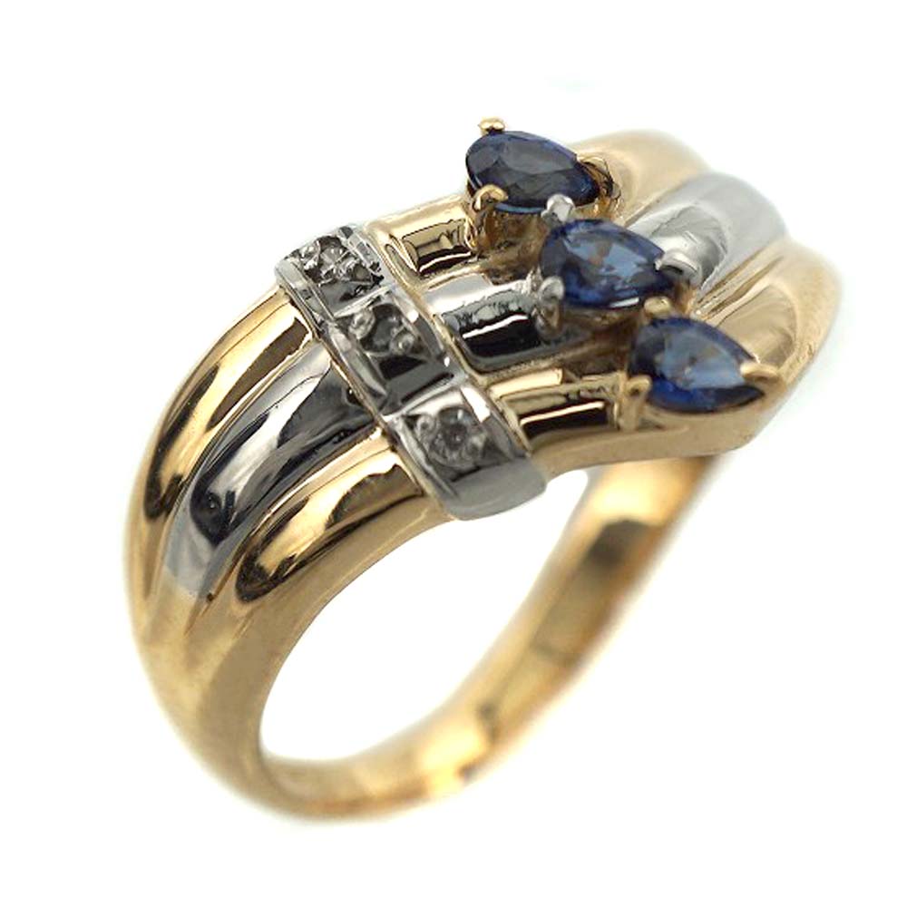 K18/KPt900 18金/プラチナ サファイア ダイヤモンド リング 指輪 レディース イエローゴールド シルバー【中古】