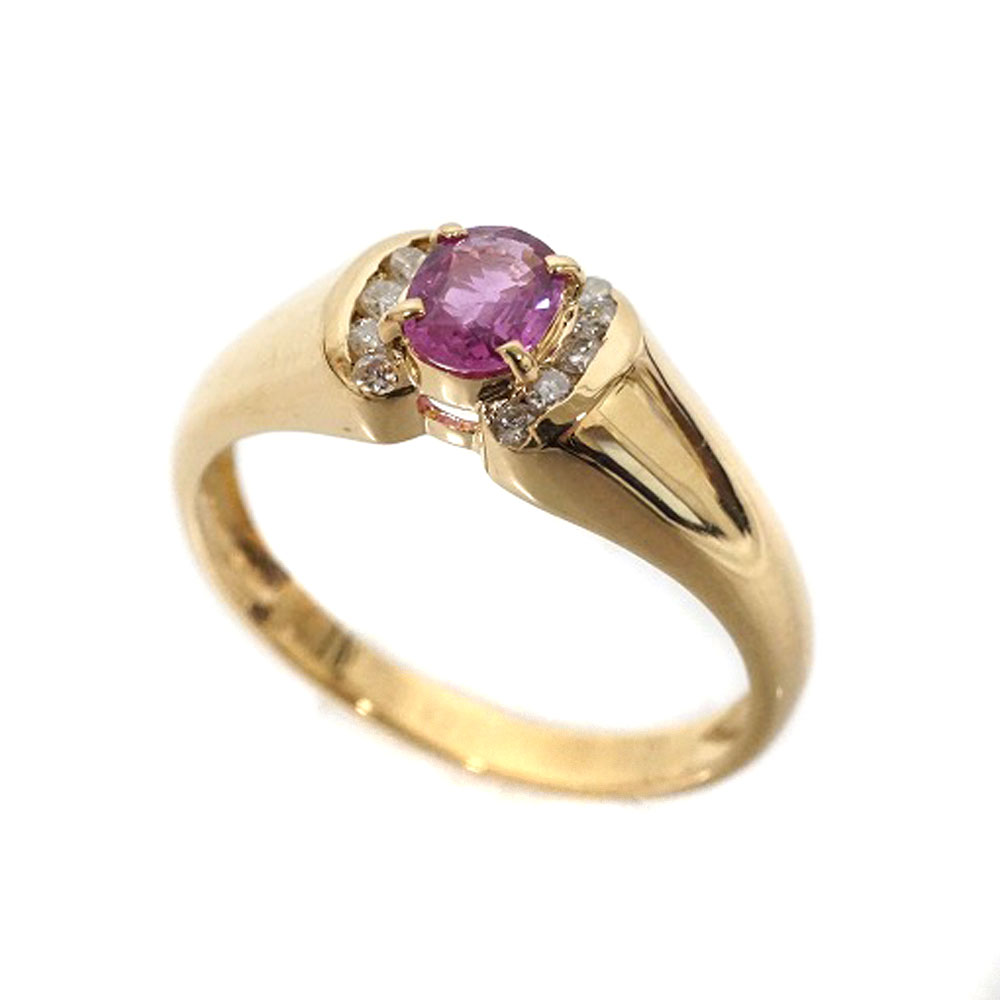 K18 ゴールド D0.10ct ダイヤモンド ピンクサファイア リング ジュエリー アクセサリー 【中古】