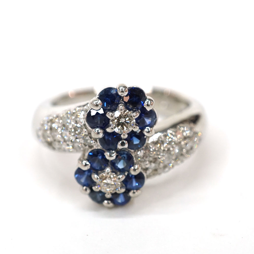 プラチナ900 Pt900 S1.13/D0.68ctリング 指輪 サファィア ダイヤモンド ジュエリー レディース【中古】