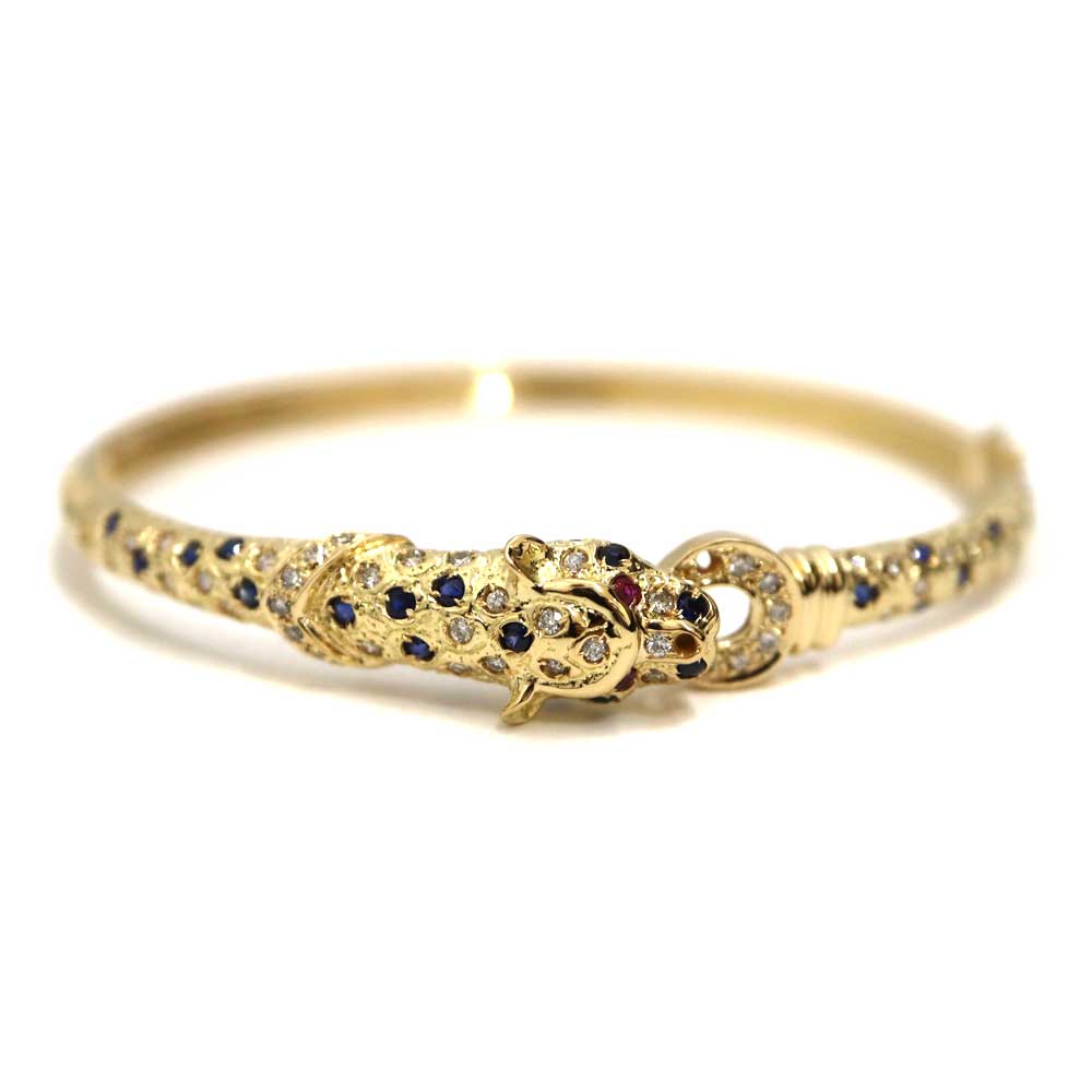 K18YG 18金イエローゴールド サファイア ルビー ダイヤモンド バングル レディース ゴールド 【中古】