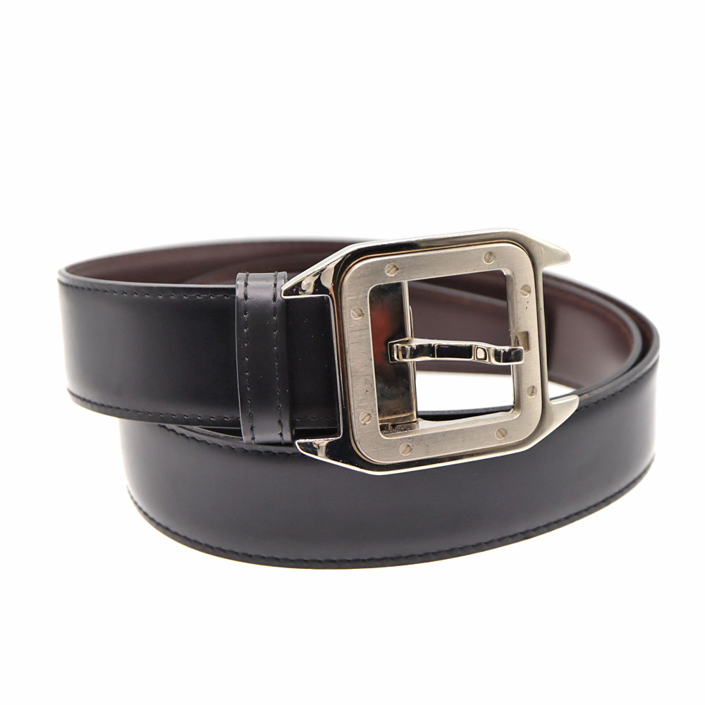 カルティエ Cartier L5000704 サントスドゥカルティエベルト ベルト ブラック シルバー金具 レザー メンズ 【中古】