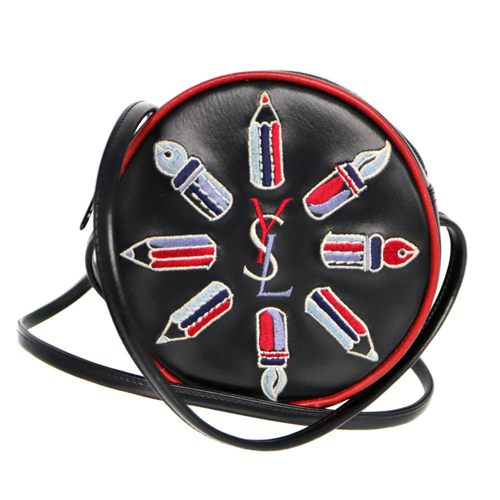イブサンローラン Yvessaintlaurent 刺繡ショルダーポーチ 鞄 レザー ブラック レディース【中古】
