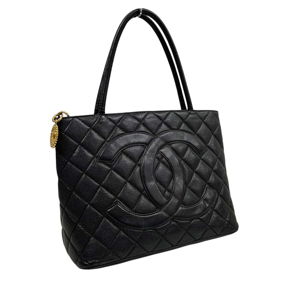 シャネル Chanel マトラッセ チェーントートバッグ レディース キャビアスキン ブラック レザー【中古】