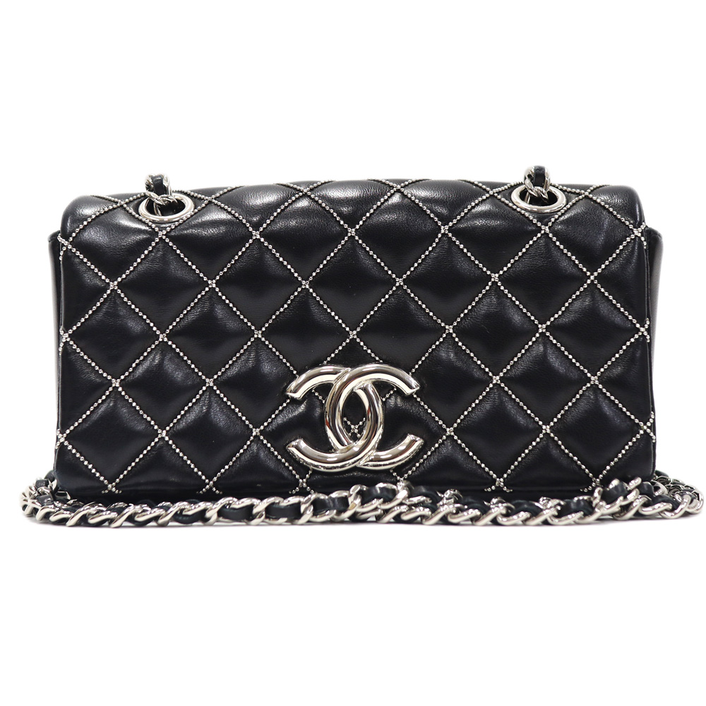 シャネル Chanel マトラッセ25 チェーンショルダーバッグ ラムスキン ブラック 【中古】