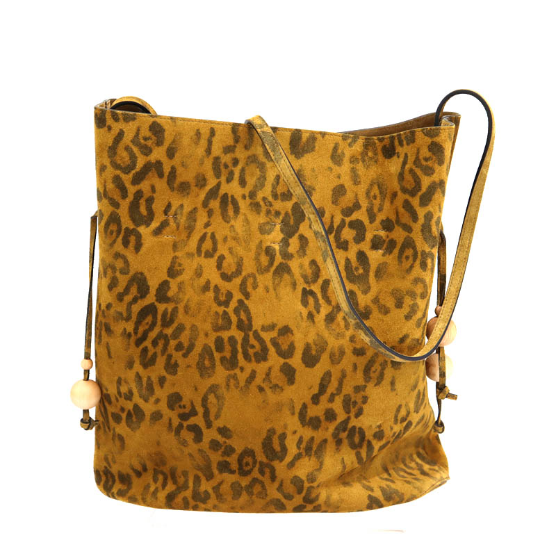 セリーヌ Celine 121123GL5.19LI レオパードミディアムバケット スエード ブラウン レディース 【中古】