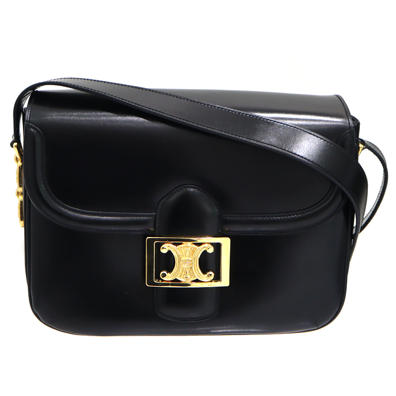 セリーヌ Celine ヴィンテージトリオンフ ショルダーバッグ レザー ブラック レディース【中古】