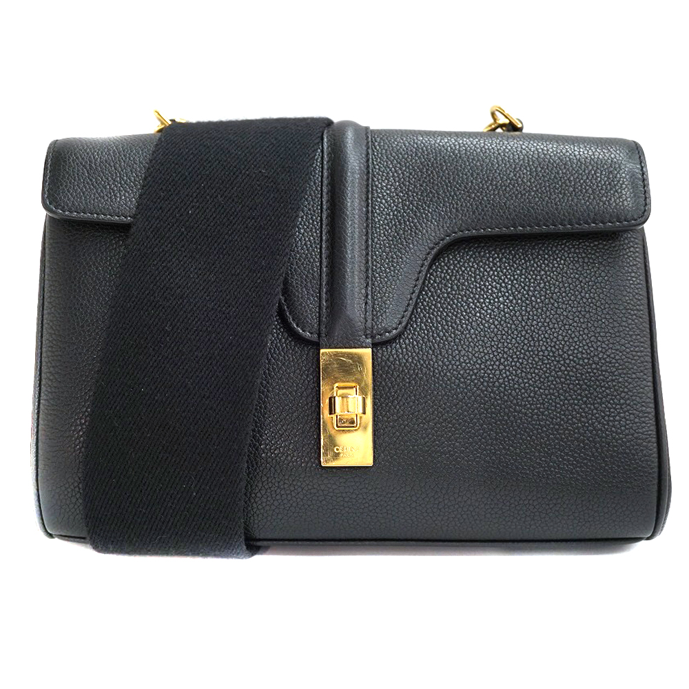 セリーヌ Celine 19685CR8 ティーンソフト16 ショルダーバッグ ブラック レディース 【中古】