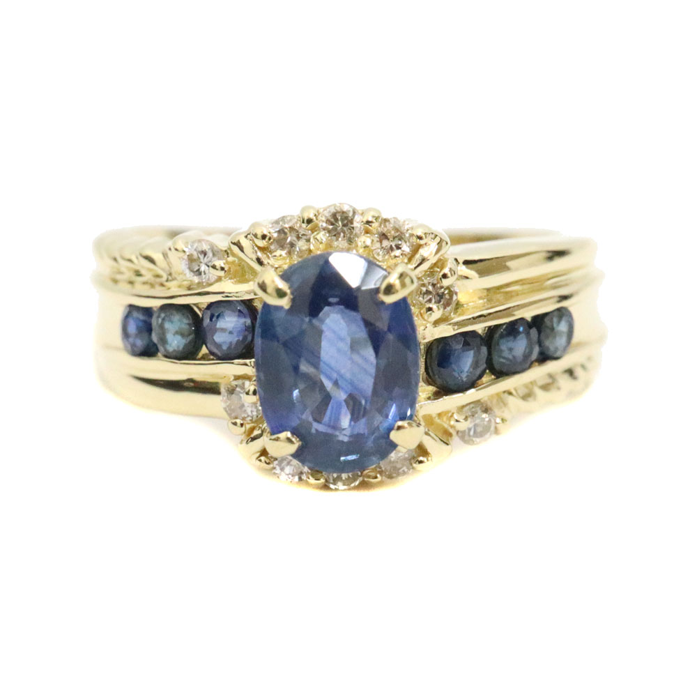 K18 18金 サファイアリング ダイヤモンド 指輪 イエローゴールド アクセサリー レディース【中古】