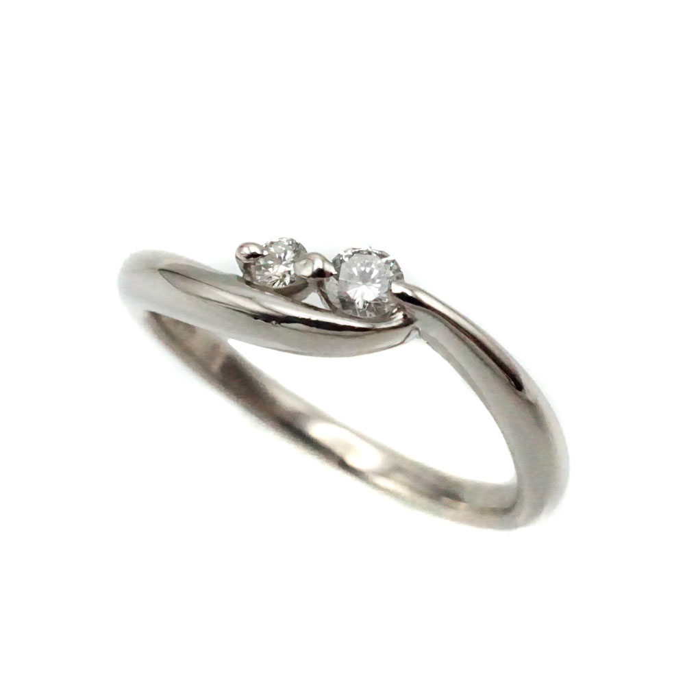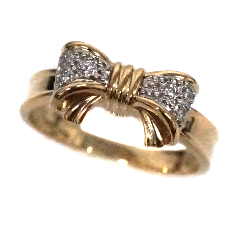 K18 Pt900 D0.04ct リボンモチーフ リング レディース ジュエリー アクセサリー 【中古】