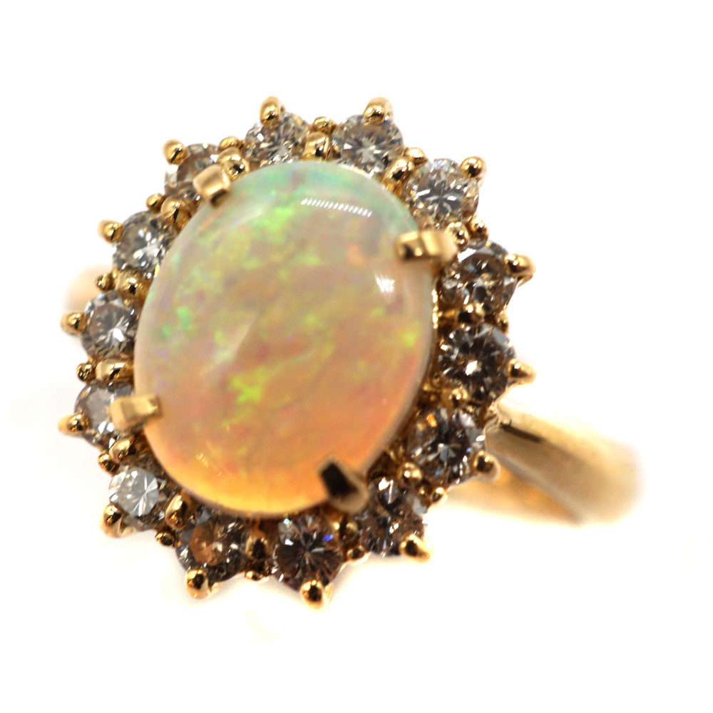 K18 ゴールド OP1.37/D0.60ct ダイヤモンド オパール リング ジュエリー アクセサリー 【中古】
