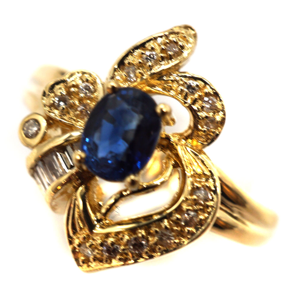 K18 ゴールド S0.70/D0.16ct ダイヤモンド サファイア リング ジュエリー アクセサリー 【中古】