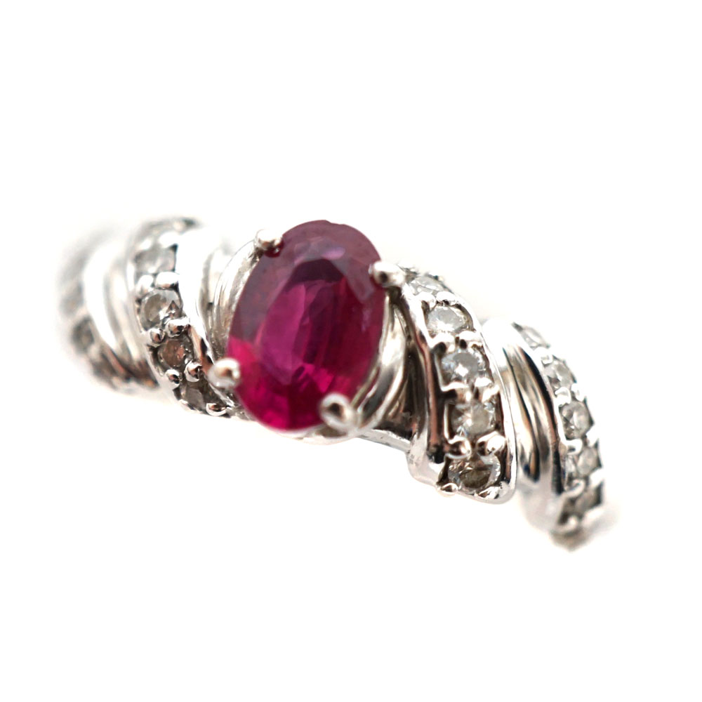 18金ホワイトゴールド K18WG R0.44/D0.13ctリング ルビー ダイヤモンド ジュエリー【中古】
