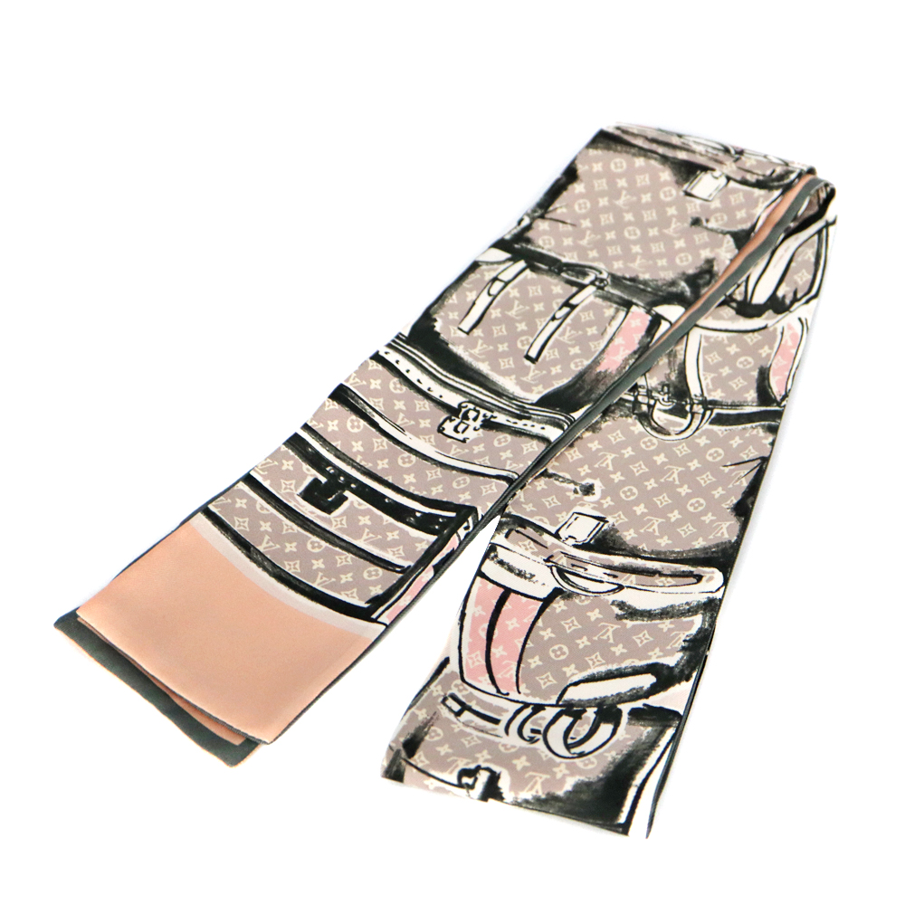 ルイヴィトン Louisvuitton M73965 バンドー スカーフ シルク ピンク グレー【中古】